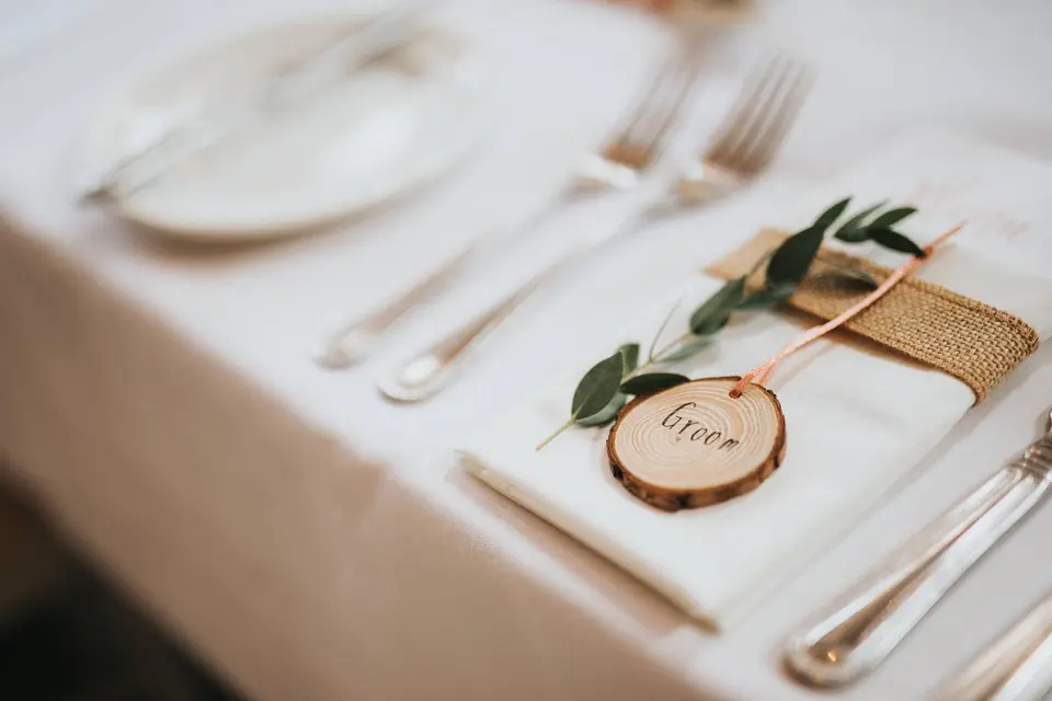 You might not even spot the difference in the photo Below. The couple have used bamboo plates here which are a great option instead of having acrylic or plastic wedding table settings. Layer up different sizes of them and pair with washable cloth napkins and bamboo cutlery. It’s a great alternative to plastics if you’re having an outdoor or garden wedding.